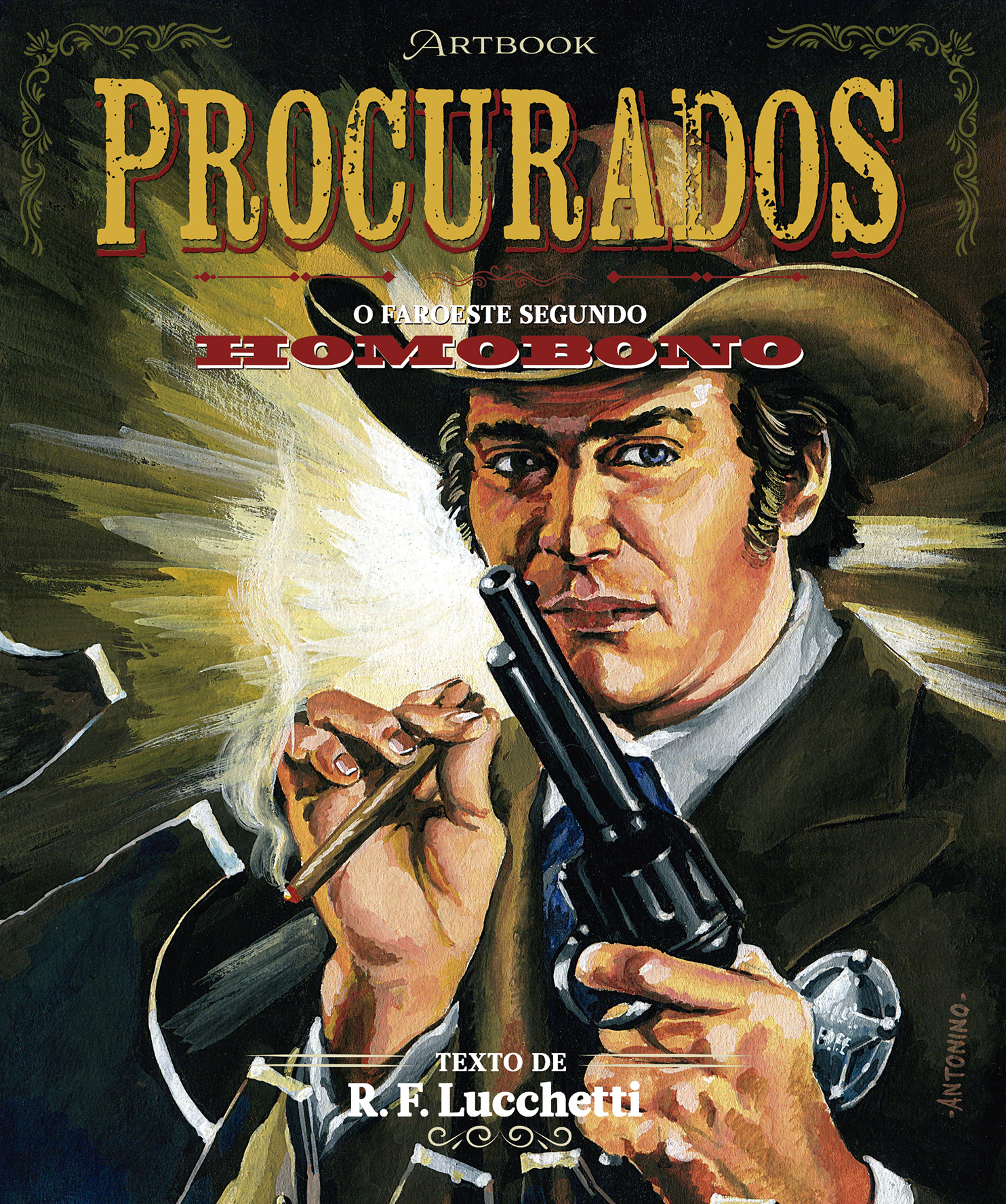 O artbook Procurados – O Faroeste Segundo Homobono une as ilustrações de faroeste do ilustrador e quadrinista Antonino Homobono Balieiro a um texto brilhante e fartamente ilustrado no qual R.F. Lucchetti conta a História da literatura pulp de faroeste no Brasil. É um memorial sobre os bolsilivros de faroeste escrito exclusivamente para esta edição pelo Mestre da Literatura Pulp brasileira!